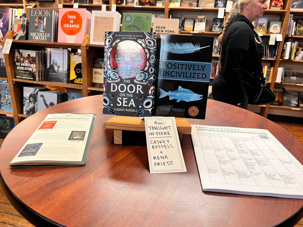 On display with Rena Priest’s Positively Uncivilized in Elliot Bay Bookstore, Seattle, WAIn Third Space BookstoreIn the Display Case at the front of Powell’s Bookstore in Portland, OregonReading at Village Books in Bellingham, WAReading at the Phinney Community Center in Seattle, WATHE ORIGINAL CHETDYL AND CARAIDENIn the Sealaska Heritage Center LonghouseChetdyl and Caraiden in NZ during the writing of the beginning of The Door on the SeaChetdyl and Caraiden drinking at the Green Dragon Inn Hobbiton, NZCaraiden and Chetdyl on the Salish SeaThe Original “Little Chich” (always pronounce his name correctly)On display in Village Books, Bellingham, WAOn display at Powell’s in Portland, ORChetdyl in the Home LandCHETDYLSAMISH ISLANDSAMISH ISLANDSamish IslandSamish IslandLocation Inspiration for Book 1These Two. Conspiring.Location Inspiration for Book 2Location Inspiration for Book 2Location Inspiration for Book 2Author Event in Spokane, WAOn display in Spokane, WAAuthor Event in Spokane, WALocation Inspiration for Book 2On display at Powell’s in Portland, ORThe Moon Through Yellow Larches Above the Glow from a Campfire (One of Caskey’s favorite camping spots in the Cascades and a location inspiration for Book 2 CASKEY AND GARTH STEINBooks for the whole famOn display at Elliot Bay Bookstore in SeattleAt Elliot Bay Bookstore in SeattleA Gift from the Tribe: Herring Egg TimeLike Raven, the author’s main motivationNINA MCCONIGLEY’S NEW BOOK!NINA MCCONIGLEY, CASKEY & FRIENDSSpotted in the Boston Public Library (Botson’s Bay in the novel is a play on Boston Bay. Tlingit’s originally called Americans “Boston Men” Spotted in the Boston Public LibraryKwaatk’wa– The Original Kwa & Caskey’s Great GrandmotherTEEW – the inspiration behind Kwa’s Character & Caskey’s Grandmother